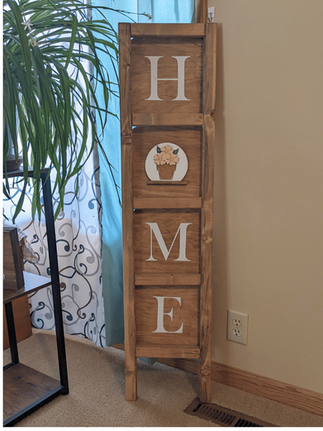 Here are a few of the items I'm making this summer to decorate. My favorite things to decorate are my welcome front porch sign, front door sign, interchangeable wood ladder and my shelf/mantel.